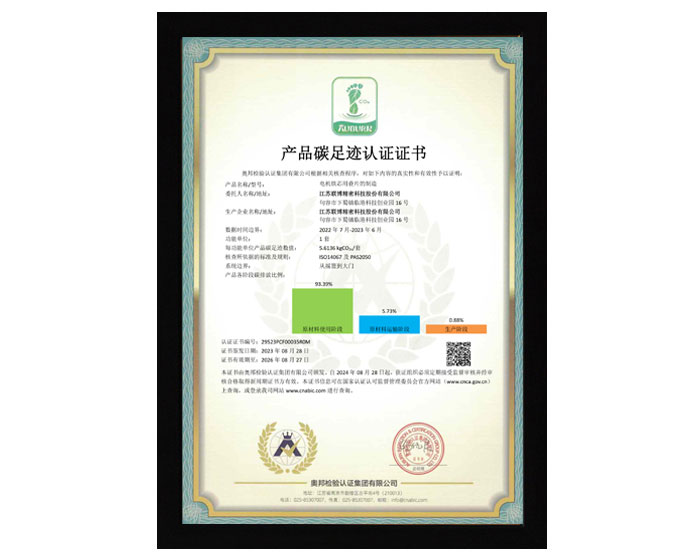 產品碳足跡認證證書